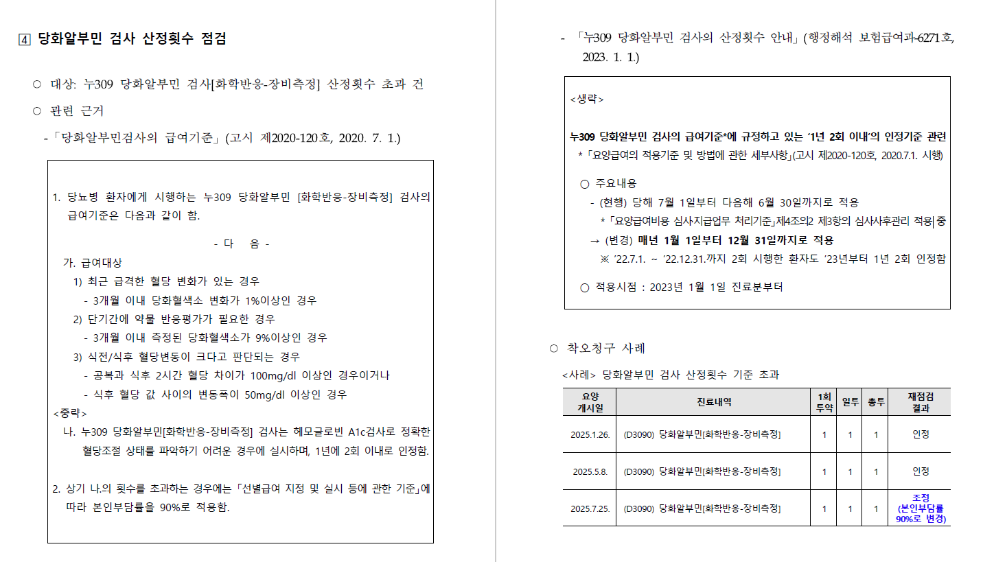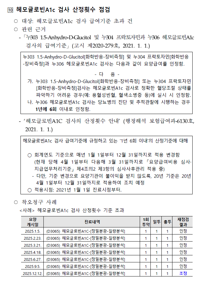 * 심사내역 재점검 항목에 당화할부민 검사 산정횟수 점검, 헤모글로빈A1c 검사 산정횟수 점검 포함